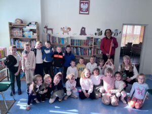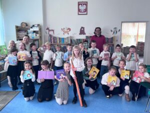 Wszystkie dzieci jednogłośnie odpowiadały że dzięki książkom stajemy się mądrzejsi, bardziej kreatywni i poznajemy świat. Po przeczytaniu książeczki o 3 świnkach która uczy nas jak ważna jest pomoc innemu oraz wykonywanie swoich zadań w sposób najlepszy jak potrafimy w tym przypadku chodziło o budowanie domu przeszliśmy do pasowania na czytelnika. Każdy uczeń klasy 1 od tego dnia może wypożyczać książki w naszej bibliotece do czego gorąco zachęcamy ponieważ posiadamy bardzo bogaty księgozbiór