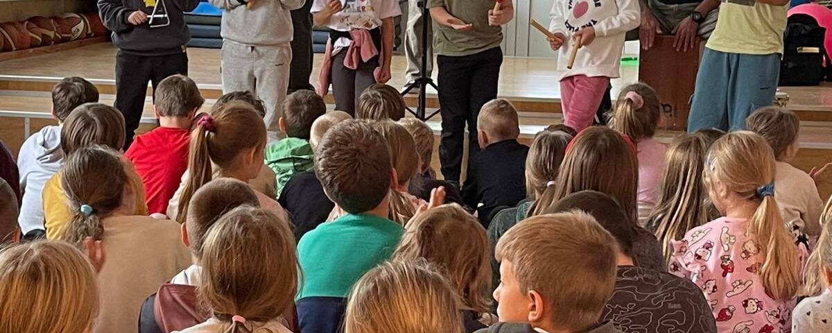 Uczniowie klas młodszych wzięli udział w pierwszej w tym roku szkolnym audycji muzycznej. Spotkanie przebiegało pod hasłem: „Harcerze wracają z wakacji”. Dzieci miały okazję posłuchać piosenek harcerskich, poznać instrumenty muzyczne oraz aktywnie włączyć się we wspólne śpiewanie i zabawy rytmiczne.